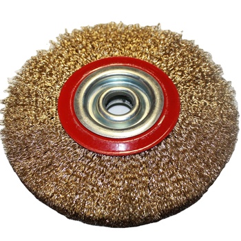 175mm (0,15-0,20) crimped पीतल परिपत्र तार ब्रश रोटरी घर्षण Deburring पहिया परिपत्र मोड़ स्टेनलेस स्टील कोण बनाने की मशीन