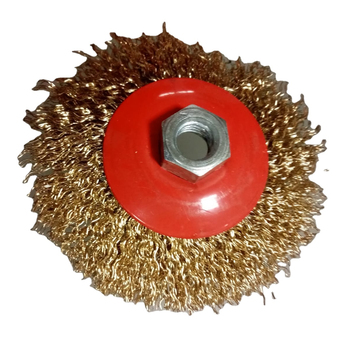 125 mm Crimped पीतल परिपत्र तार ब्रश रोटरी घर्षण Deburring पहिया परिपत्र मोड़ स्टेनलेस स्टील कोण बनाने की मशीन सफाई